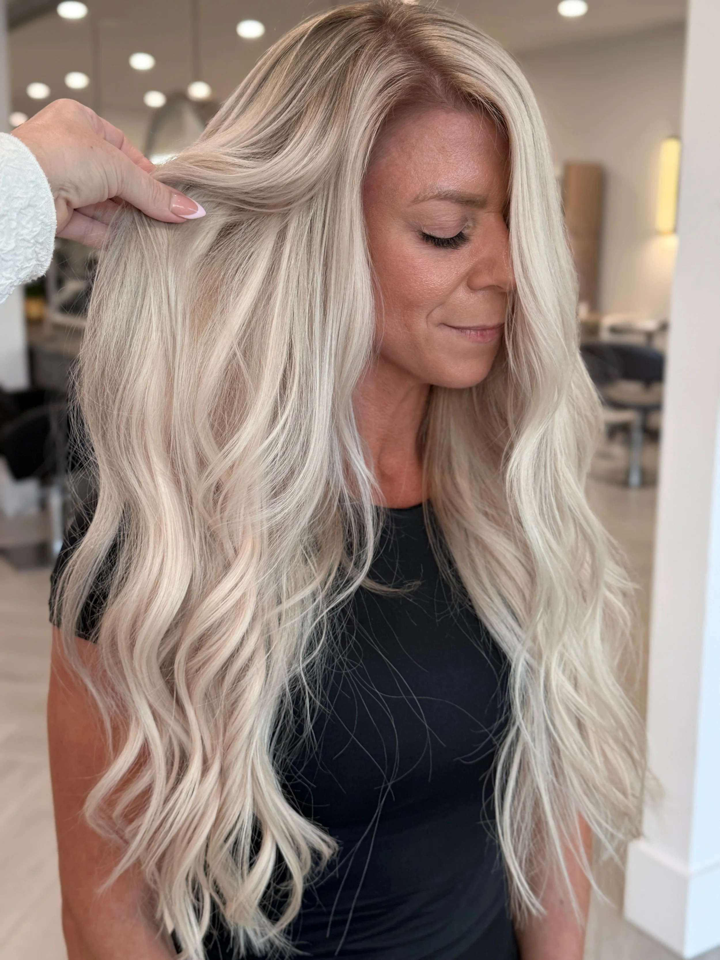 Our talented hairstylists are here to guide you in selecting the perfect luxury hair extensions that complement your individual style, skin tone and facial features. As certified and Elite stylists, we ensure that our extensions and installation are not only mesmerizingly beautiful but also comfortable.